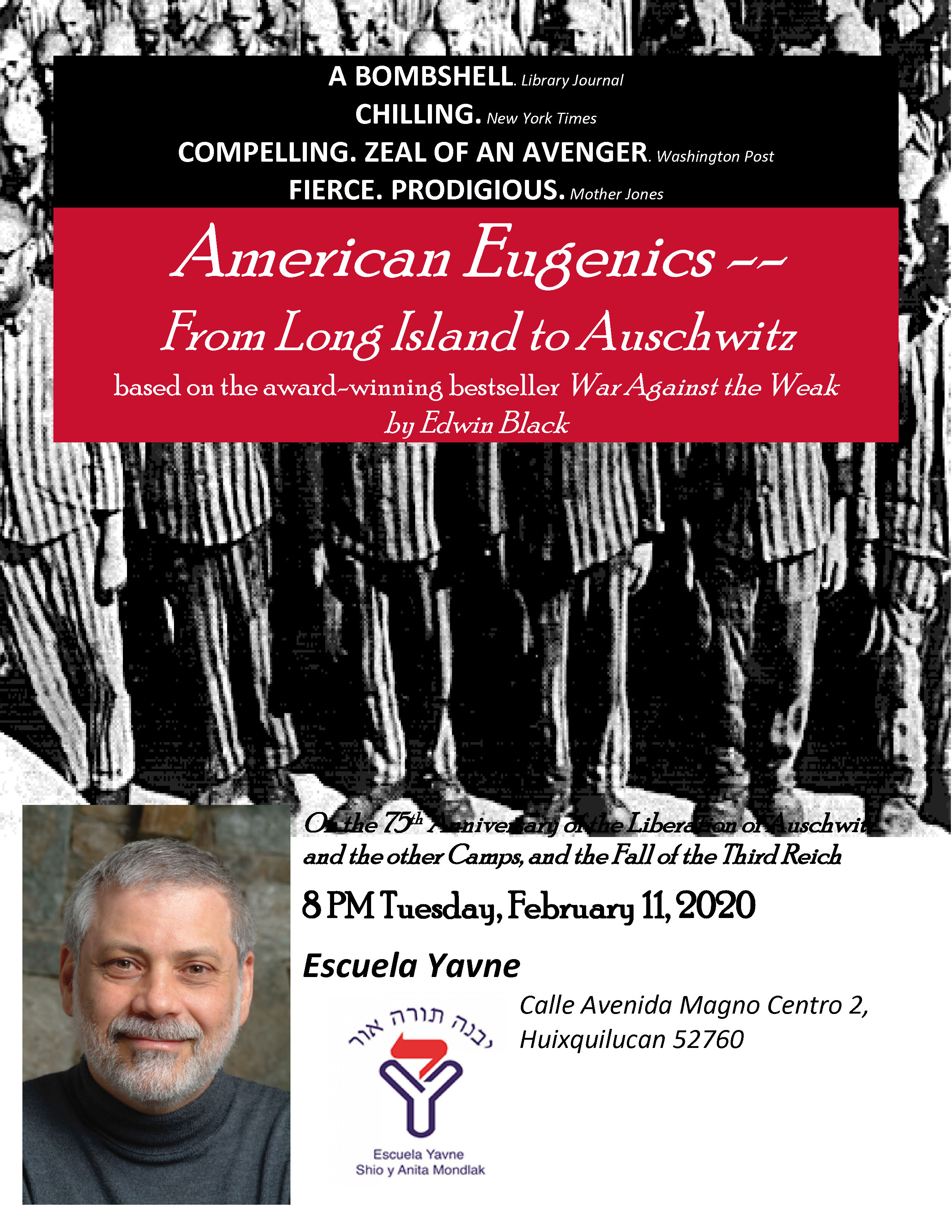 Sponsored by Escuela Yavne, Museo Memoria y Tolerancia, Instituto Méxicano del Seguro Social, Instituto Tecnológico Autónomo de México, Ramat Shalom Synagogue, Universidad Anáhuac, Universidad Nacional Autónoma de México.