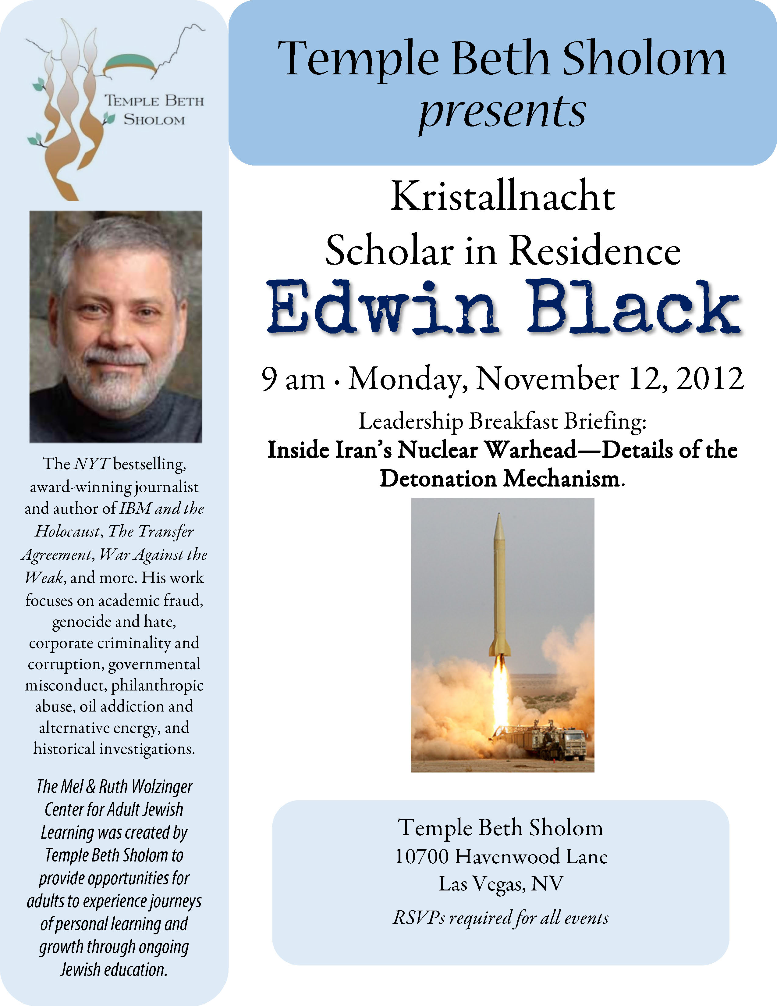 Leadership Breakfast Briefing: “Inside Iran’s Nuclear Warhead: Details of the Detonation Mechanism,” part of the Edwin Black Kristallnacht Scholar-in Residence.