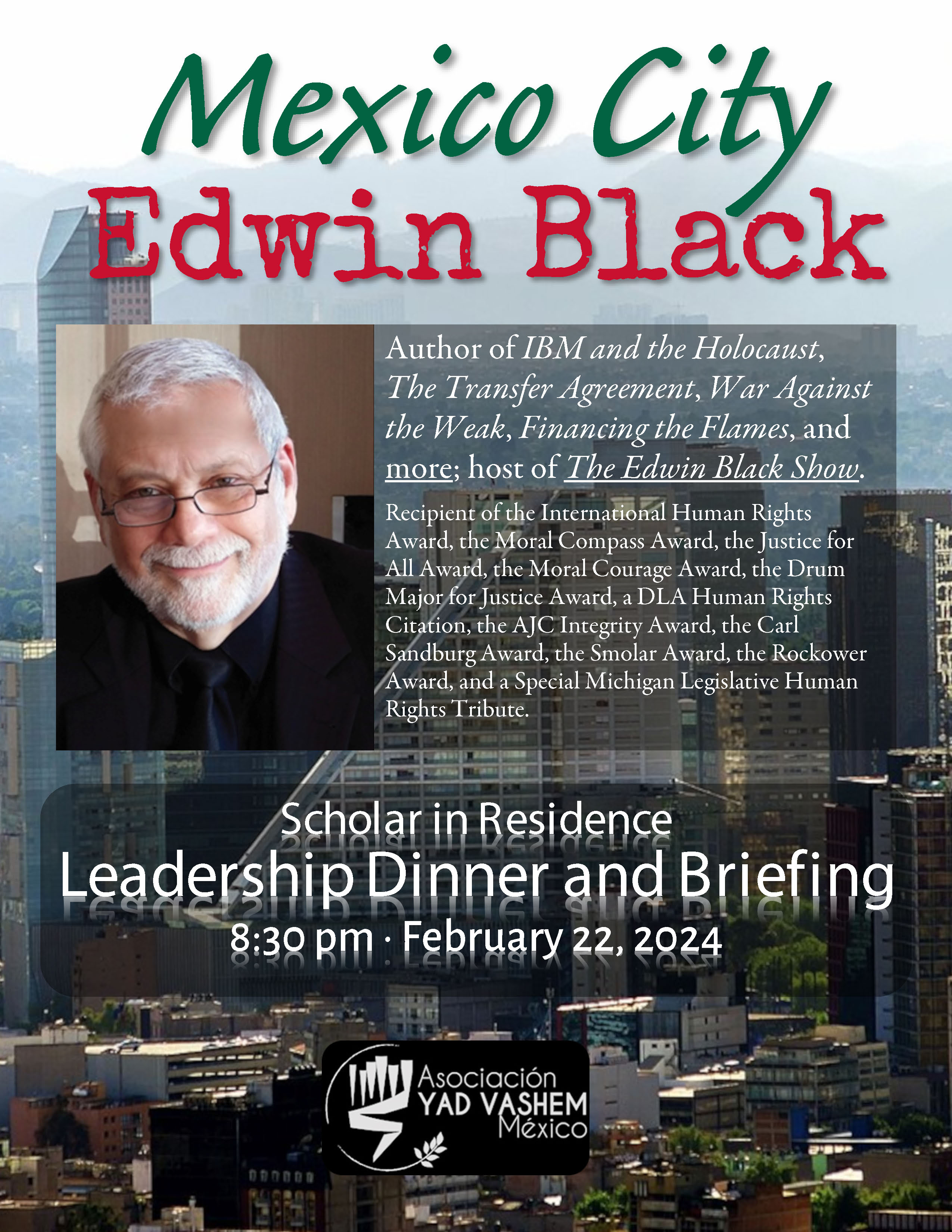 Yad Vashem Mexico presents Edwin Black for a VIP dinner and leadership briefing.