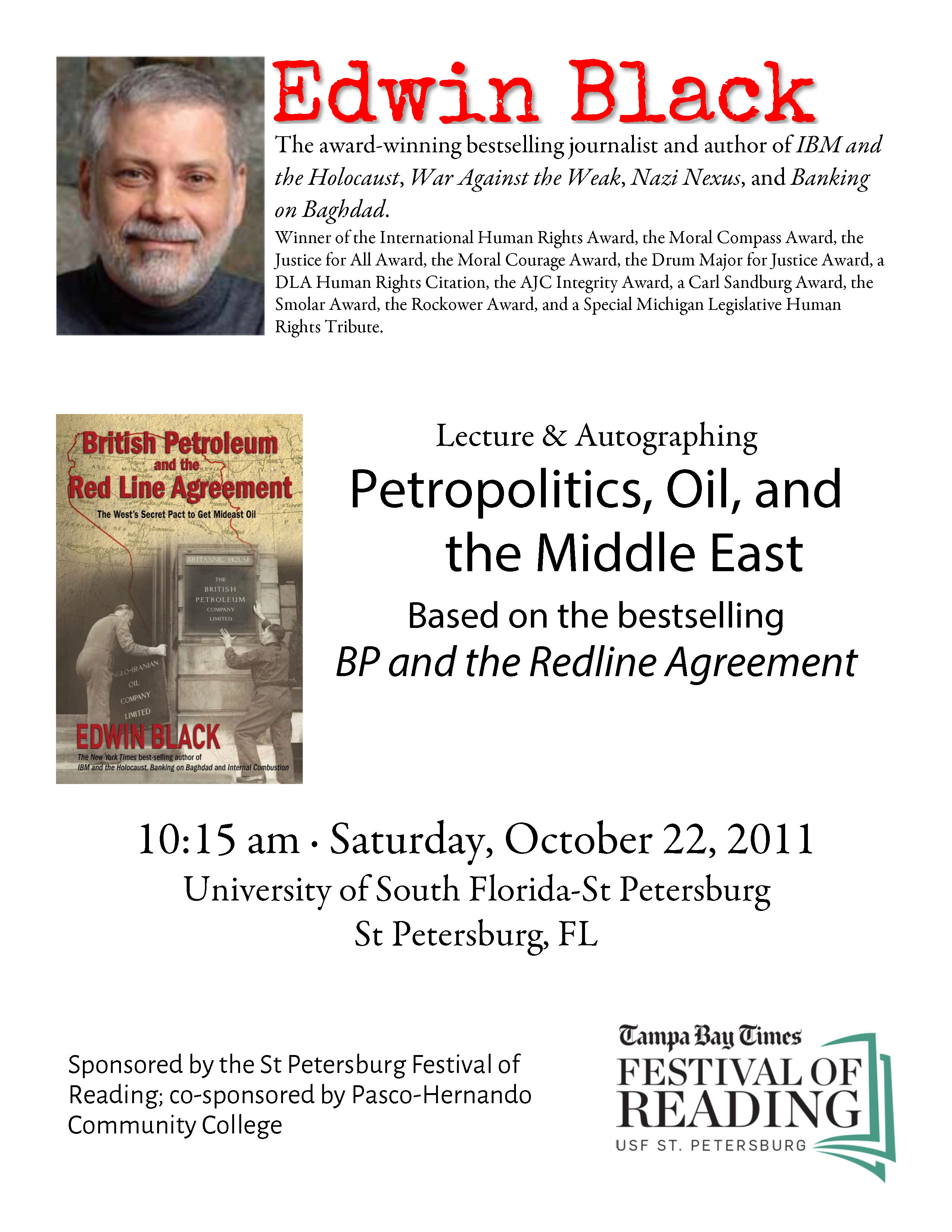 Sponsored by the St Petersburg Festival of Reading; co-sponsored by Pasco-Hernando Community College
