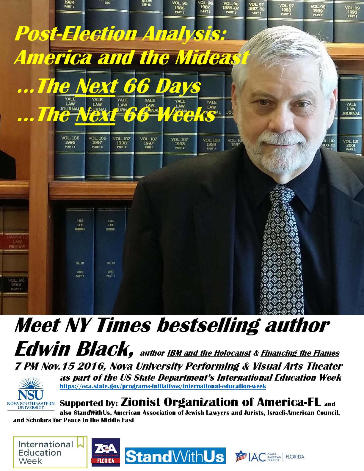 Supported by: Nova Southeastern University Office of International Affairs; also supported by Zionist Organization of America-FL and also StandWithUs, American Association of Jewish Lawyers and Jurists, Israeli-American Council, and Scholars for Peace in the Middle East